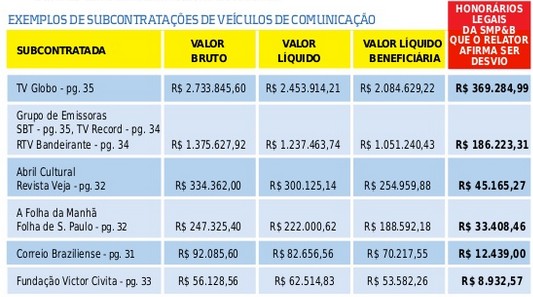 Ou seja, a Globo sabe que os recursos não foram desviados porque recebeu o dinheiro. Mas o cinismo da emissora é infinito. E não só dela, mas de jornais como a Folha, Estadão e Correio Braziliense, que, junto com a revista Veja, também foram beneficiados. Outras emissoras de TV, como o SBT, também receberam vultosas verbas de publicidade da Câmara. Tudo dentro da lei.