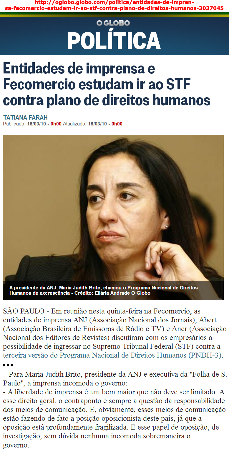 Podemos dizer que todos os dias são dias de barrigas na mídia jornalística se forem assim consideradas todas as informações e interpretações falseadas deturpadas ou deformadas intencionalmente por Cantanhêde e seus colegas jornalistas das empresas de comunicação que compõem o chamado Partido da Imprensa Golpista, partido esse assumido publicamente pela presidenta da Associação Nacional dos Jornais, Maria Judith Brito, que também exerce altos cargos executivos no Grupo Folha e que disse em 18.03.2010: “A liberdade de imprensa é um bem maior que não deve ser limitado. A esse direito geral, o contraponto é sempre a questão da responsabilidade dos meios de comunicação. E, obviamente, esses meios de comunicação estão fazendo de fato a posição oposicionista deste país, já que a oposição está profundamente fragilizada. E esse papel de oposição, de investigação, sem dúvida nenhuma incomoda sobremaneira o governo.”