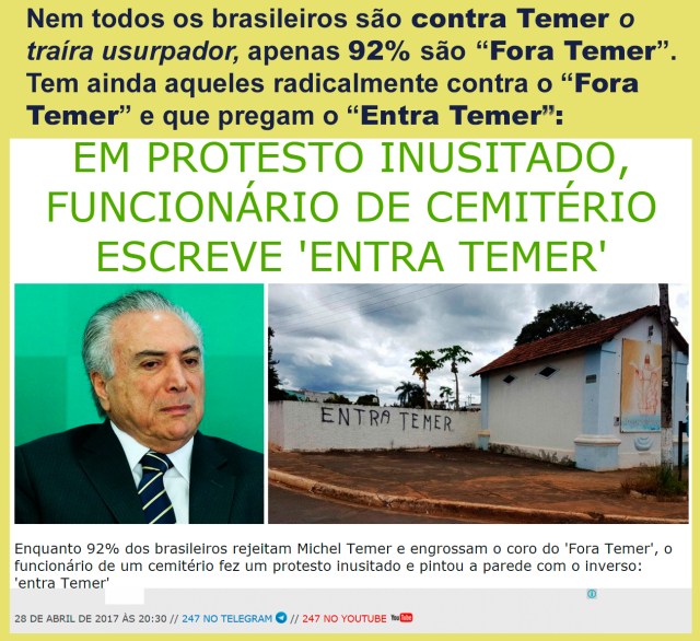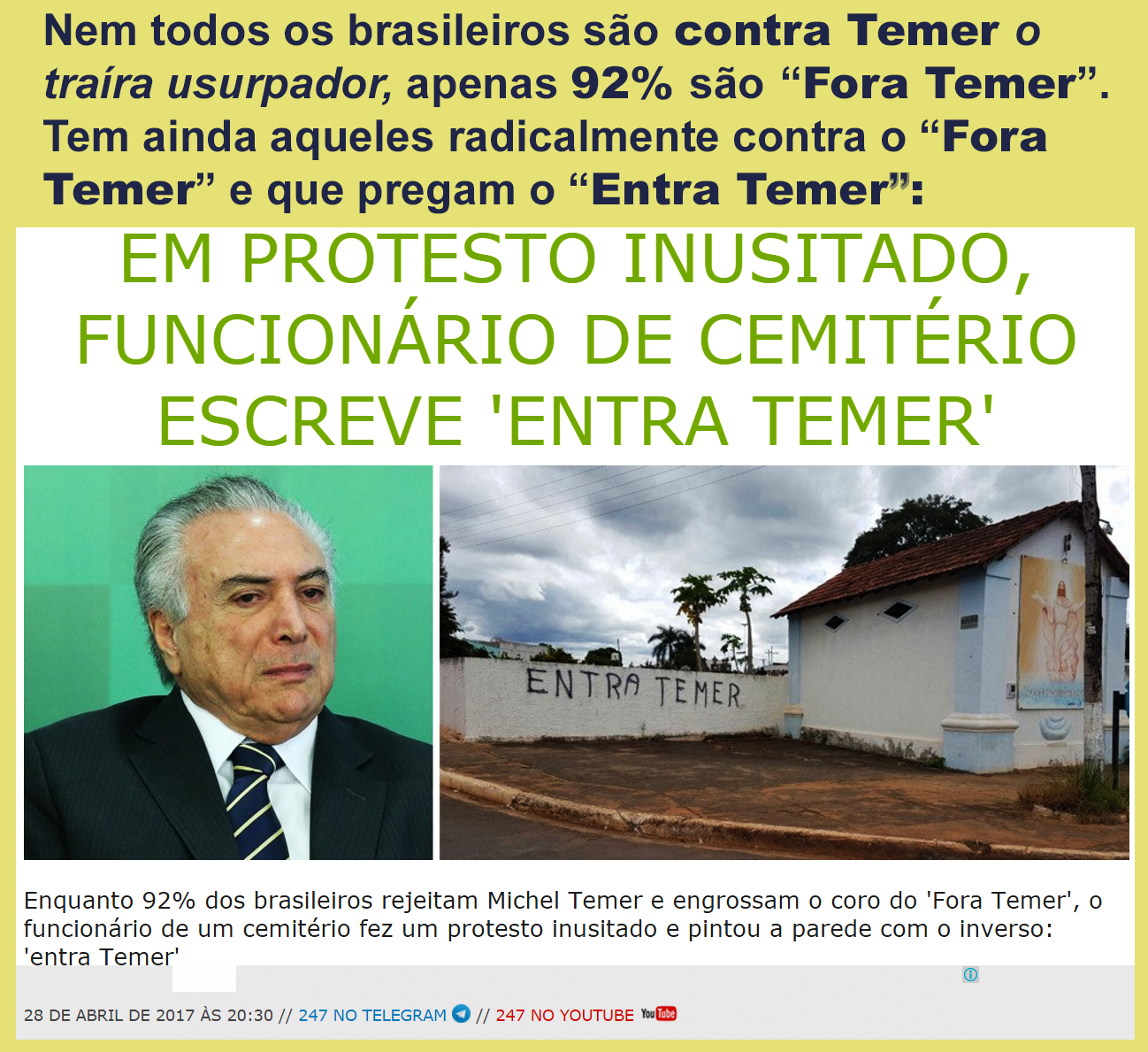 Quase 100% dos brasileiros defende o “Fora Temer” mas tem quem defende o “Entra Temer” maio16 r humborges Compartilhe isso: Clique para compartilhar no X(abre em nova janela) 18+ Clique para compartilhar no Facebook(abre em nova janela) Facebook Mais Clique para compartilhar no WhatsApp(abre em nova janela) WhatsApp Curtir Carregando... Relacionado