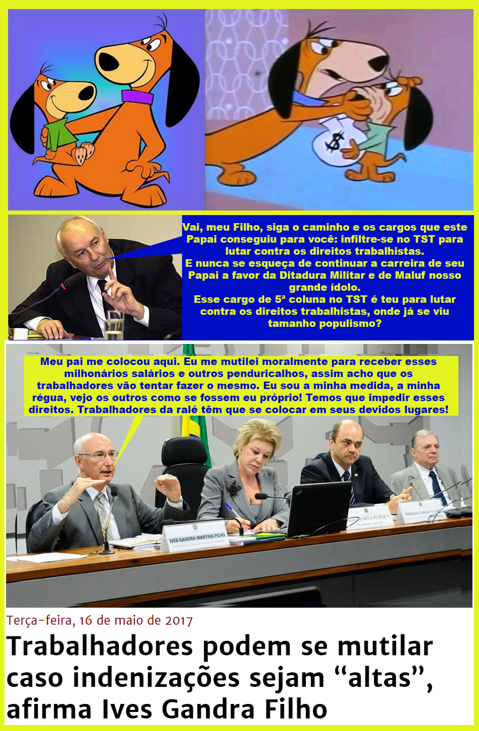 Esse descendente dos poderosos anti-trabalhistas incrustados no TST lá está para lutar CONTRA os direitos dos cidadãos que trabalham no dia-a-dia e constroem nosso país.