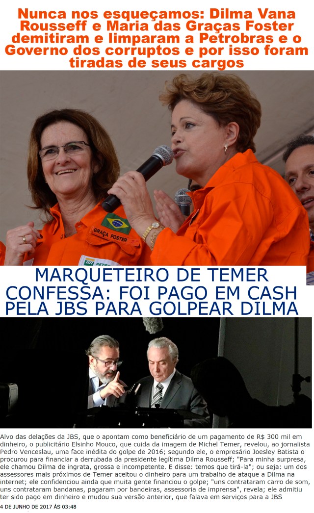 A cada dia, cada momento, vão se tornando claras todas essas nefastas artimanhas políticas com as quais os corruptos tomaram conta do Brasil, com ajuda da própria Polícia Federal Aecista, do MPF e do Judiciário Maior e menor.