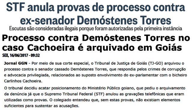 O juízo de primeiro grau usurpou competência do Supremo Tribunal Federal ao liberar interceptações telefônicas contra o ex-senador Demóstenes Torres, quando ele ainda tinha prerrogativa de foro, e demorar um ano para comunicar a corte sobre o fato. Assim entendeu a 2ª Turma do Supremo, nesta terça-feira (25/10/2016), ao anular provas contra o ex-senador, que foi grampeado em investigações contra o bicheiro Carlos Cachoeira e acabou tendo o mandato cassado em 2012.