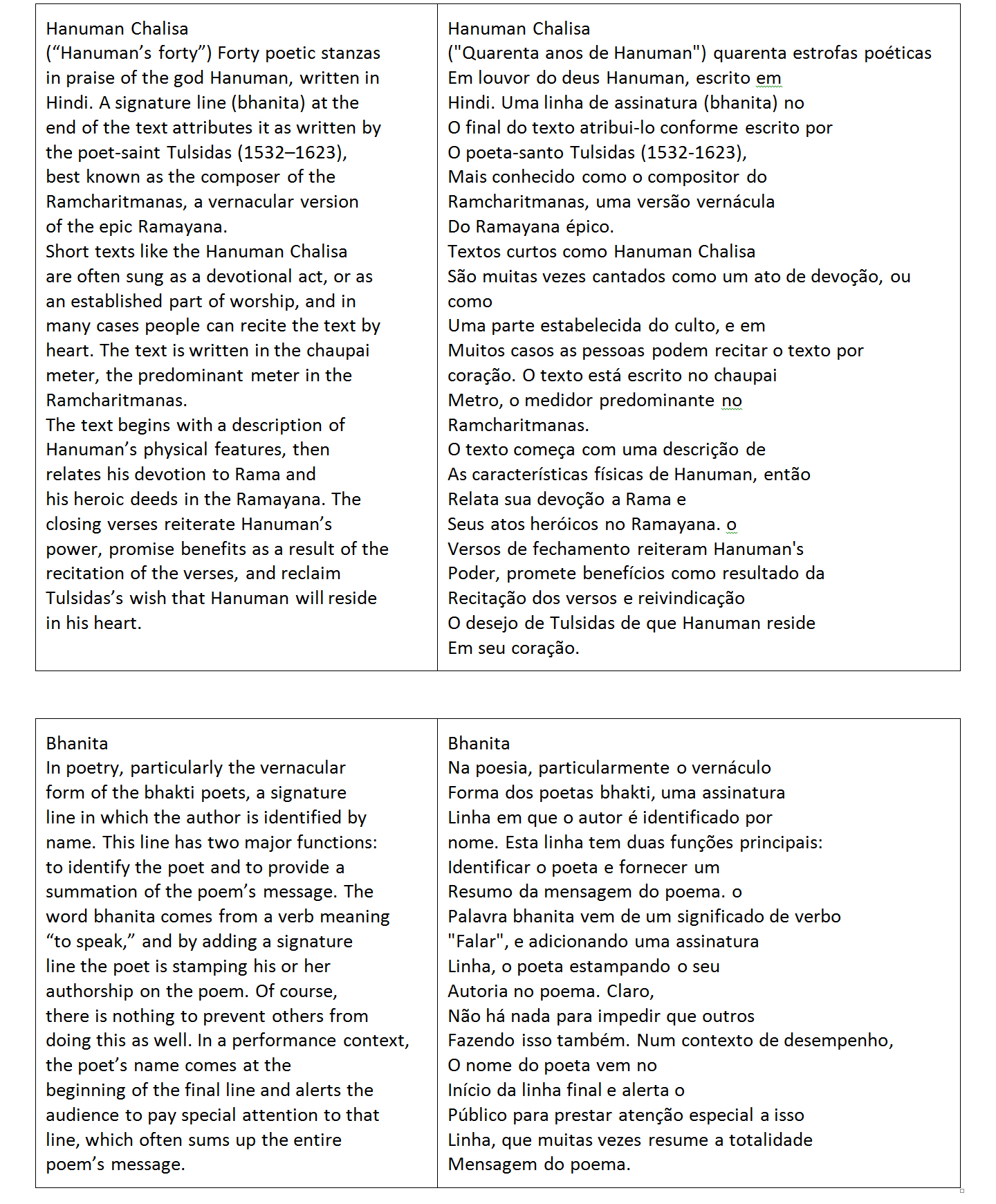 Em seguida selecionamos e copiamos os dois textos traduzidos pelo Google Tradutor, colando-os no Word, numa tabela simples de uma linha e duas colunas, onde iremos “melhorar” a tradução em Português, pois sabemos que o Tradutor do Google é uma ferramenta artificial, digamos uma máquina que, embora melhorada a cada dia ainda é limitada, não conseguindo traduzir como uma pessoa que conhece e domina efetivamente as línguas (neste caso, inglesa e portuguesa):