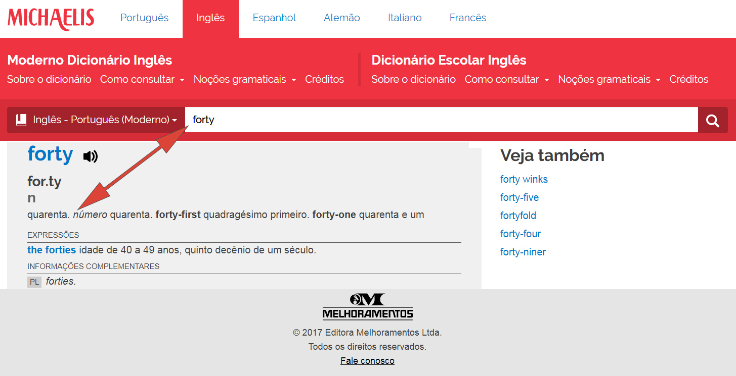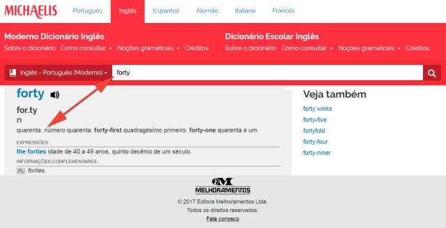 Para tirar a dúvida acionamos o Michaelis e confirmamos que “forty” significa também “o número quarenta”: