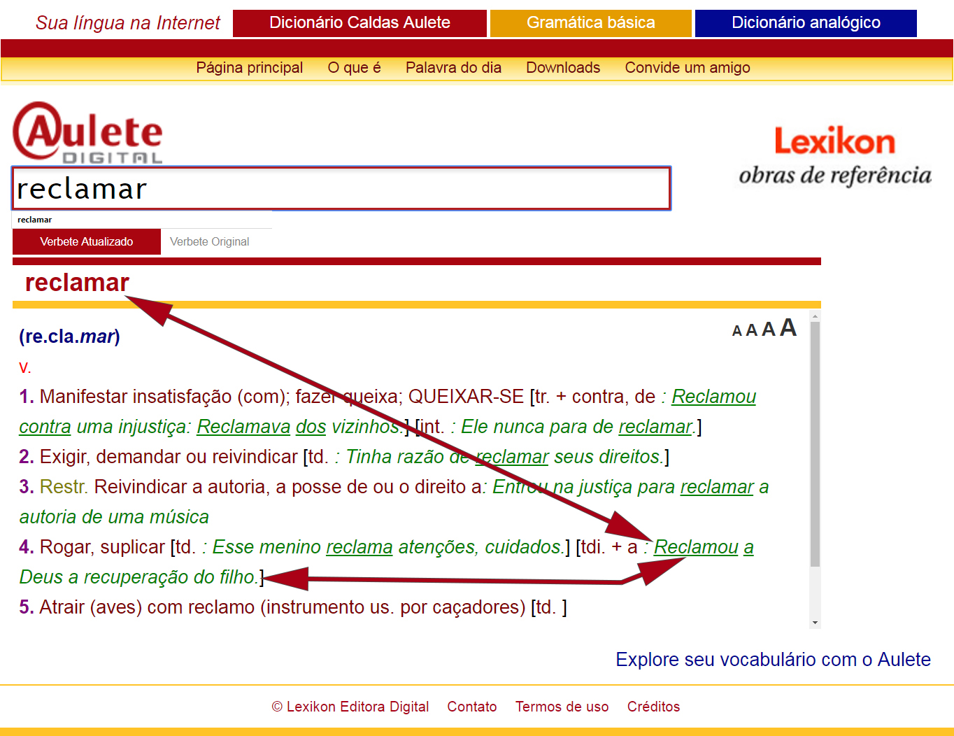 Já no Aulete encontramos a palavra “reclamar” com os significados de “rogar” e “suplicar”, contendo como exemplo a frase “Reclamou a Deus a recuperação do filho.”, que se encaixa no sentido do texto traduzido sobre o verbete “Hanuman Chalisa” que copiamos da Enciclopédia Ilustrada do Hinduísmo: