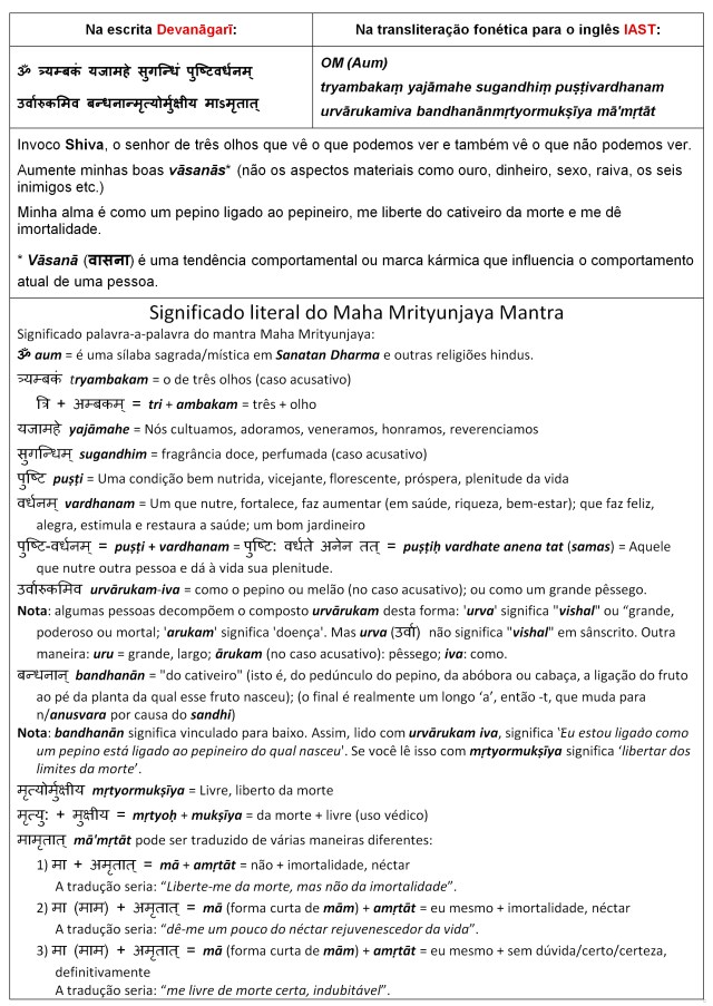 O Mahamrityunjaya Mantra, outro muito lindo set2 r humborges O mantra cantado se inicia aos 1:36 minutos do vídeo. As informações abaixo foram obtidas na Wikipedia. Com relação ao significado da palavra OM (Aum), repetimos o que dissemos em postagens anteriores: नमो नमः Namo Namah! Compartilhe isso: Clique para compartilhar no X(abre em nova janela) 18+ Clique para compartilhar no Facebook(abre em nova janela) Facebook Mais Clique para compartilhar no WhatsApp(abre em nova janela) WhatsApp Curtir Carregando... Relacionado