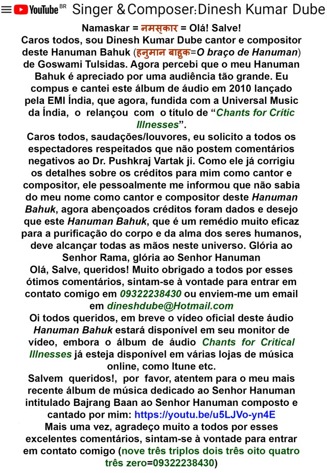Mais canções de Dinesh Kumar Dube para o Senhor Hanuman out8 r humborges Compartilhe isso: Clique para compartilhar no X(abre em nova janela) 18+ Clique para compartilhar no Facebook(abre em nova janela) Facebook Mais Clique para compartilhar no WhatsApp(abre em nova janela) WhatsApp Curtir Carregando... Relacionado
